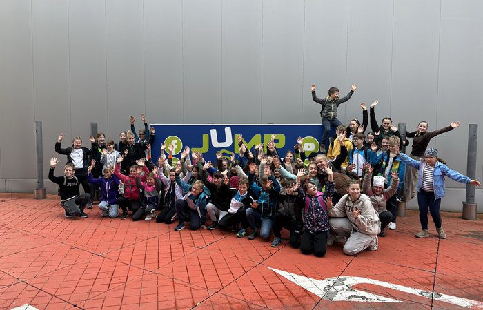 Am 29. April machten wir uns mit 48 Kindern auf den Weg in die Trampolinhalle.